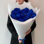 На фото букет из 15 синих роз. В составе: роза (синяя) 15 шт, дизайнерская упаковка 1 шт, атласная лента 1 шт, . Все цветы свежие и ароматные, букет красиво оформлен и отлично подходит для подарка. Доступна доставка цветов или самовывоз.