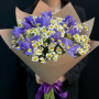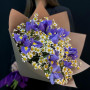 Букет из синих ириcов и белой кустовой розы