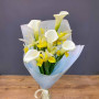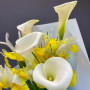 Букет из желтых ирисов и беллых калл в Шелехове
