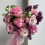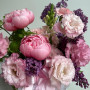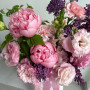 Букет розовых пионов с сиренью