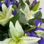 Букет из белых лилий с синими ирисами в Шелехове