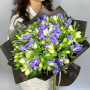 На фото мужской букет с ирисами и альстромерией. В составе: ирис 19 шт, альстромерия 20 шт, дизайнерская упаковка 2 шт, атласная лента 1 шт, . Все цветы свежие и ароматные, букет красиво оформлен и отлично подходит для подарка. Доступна доставка цветов или самовывоз.